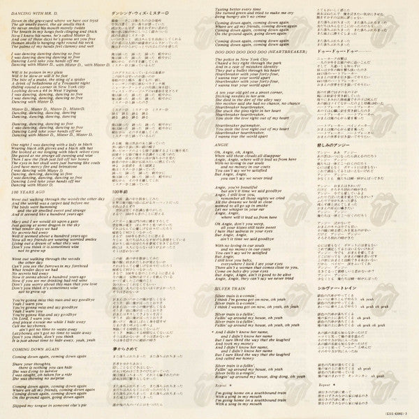 Without obi.With printed inner sleeve, card "goats head soup" print and a 4-page insert.Inner sleeve and Insert have foxing stain.Disc has hairline.