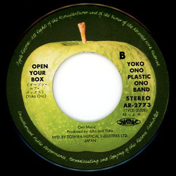Japanese issue with gatefold picture & lyrics insert with die-cut Apple company sleeve.Unsliced Apple on both sides, which usually denotes a double A side. But the sides are clearly labeled A and B.