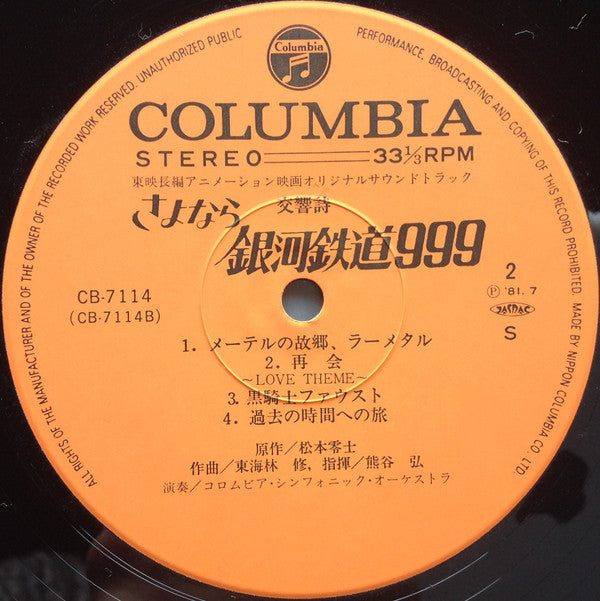 Soundtrack to the 1981 Toei Animation Movie Adieu Galaxy Express 999.Gatefold sleeve with obi and insert glued-in.