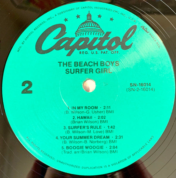 A Capitol re-issue containing less songs than the original release. Missing, "Little Deuce Coupe" and "Our Car Club"."A CAPITOL VALUE" sticker on shrink wrap.