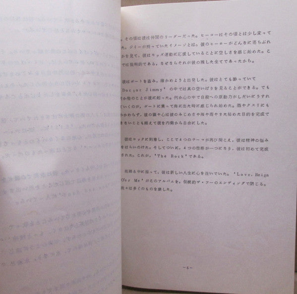 Japanese promotional issue with 44 page photo/lyric booklet, 4-page Japanese lyric & liner note insert, printed inner sleeves M-114 with band photos & Japanese text, and 6 page stapled 7x10" promotional booklet dated 12-21-1973.Promotional labels have "見本盤 Not For Sale" printed on them.