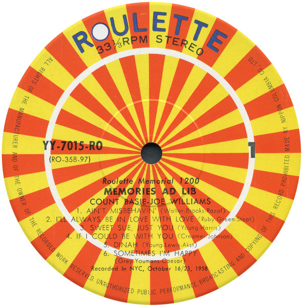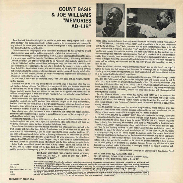 Joe Williams - Memories Ad-Lib (LP, Album, Limited Edition, Reissue, Stereo) - Near Mint (NM or M-) / Very Good Plus (VG+)