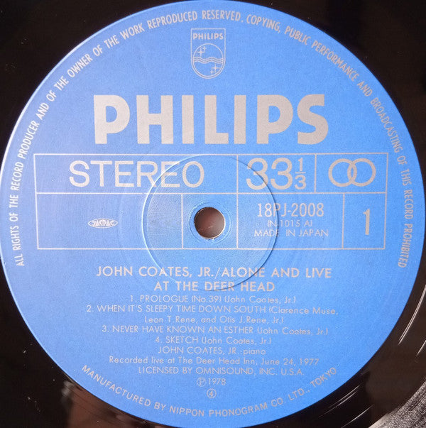 John Coates, Jr - Alone And Live At The Deer Head (LP, Album) - Very Good Plus (VG+) / Good Plus (G+)