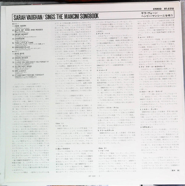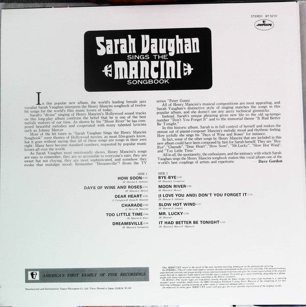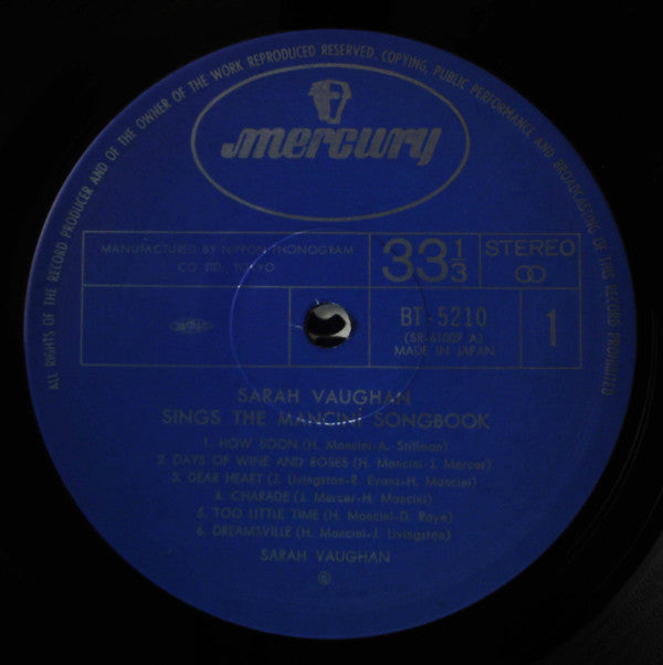 Sarah Vaughan - Sings The Mancini Songbook (LP, Album) - Very Good Plus (VG+) / Very Good Plus (VG+)