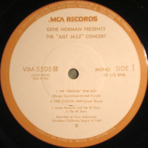 Gene Norman Presents The "Original" Star Dust By Lionel Hampton All Stars From The "Just Jazz" Concert.Recorded at Pasadena Civic Auditorium, Pasadena, Calif., August 4, 1947.