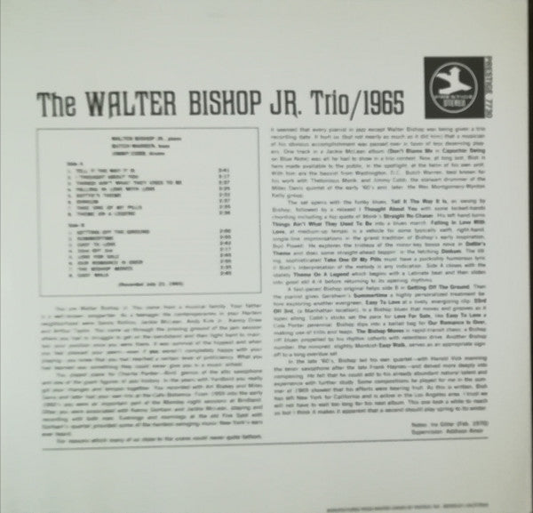 The Walter Bishop, Jr. Trio - 1965 (LP, Album, Reissue, Stereo) - Very Good Plus (VG+) / Very Good (VG)