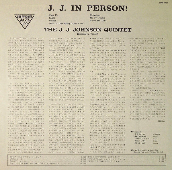 The J.J. Johnson Quintet - J. J. In Person! (LP, Album, Reissue) - Very Good Plus (VG+) / Very Good Plus (VG+)