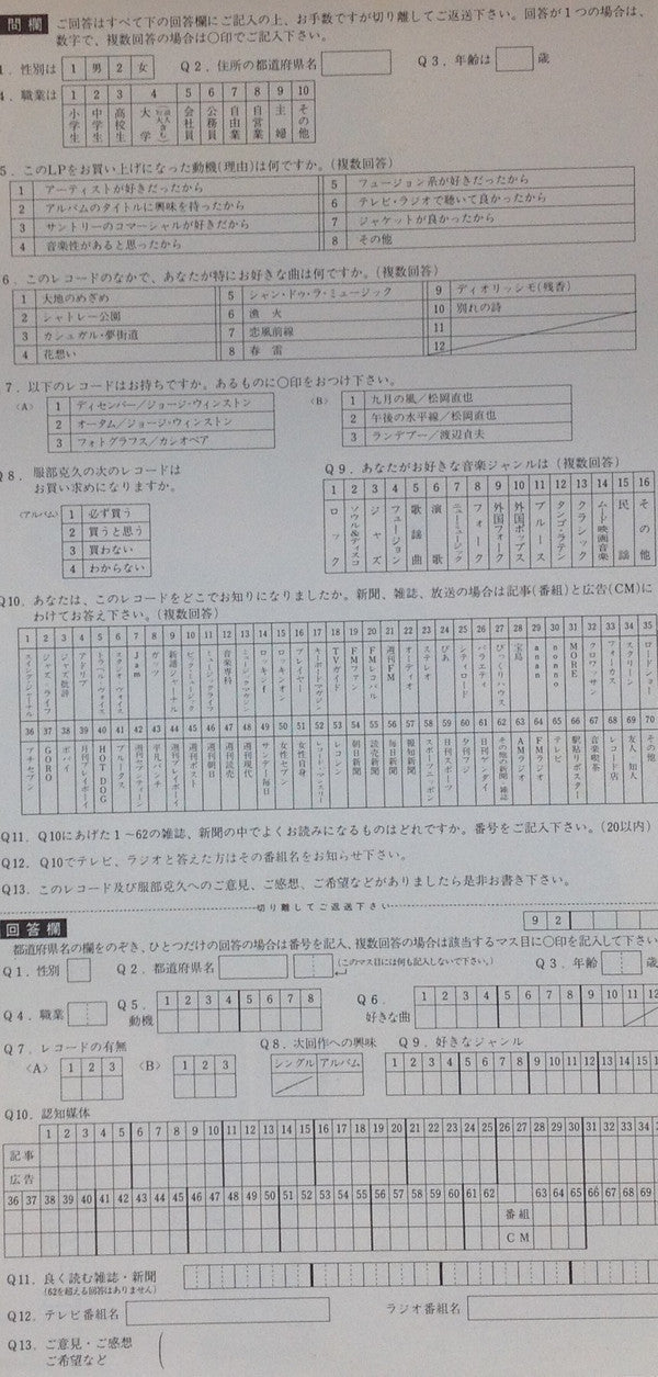 Collection of music used in Suntory commercials.Released with obi, insert and survey card.