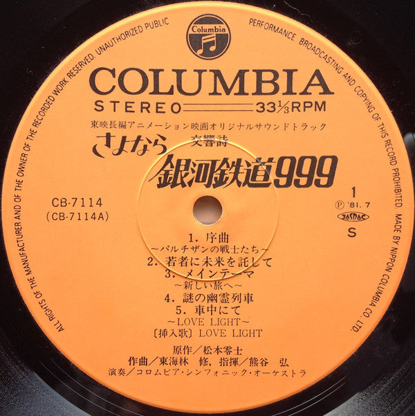Soundtrack to the 1981 Toei Animation Movie Adieu Galaxy Express 999.Gatefold sleeve with obi and insert glued-in.