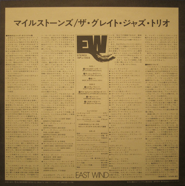 The Great Jazz Trio - Milestones (LP, Album, Reissue) - Near Mint (NM or M-) / Very Good Plus (VG+)