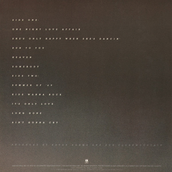 Bryan Adams - Reckless (LP, Album) - Near Mint (NM or M-) / Very Good Plus (VG+)