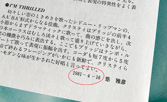 Released with a white obi and a two sided insert with Japanese liner notes on one side and lyrics and track information in English on the otherInsert: