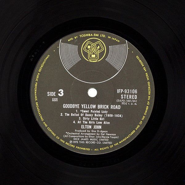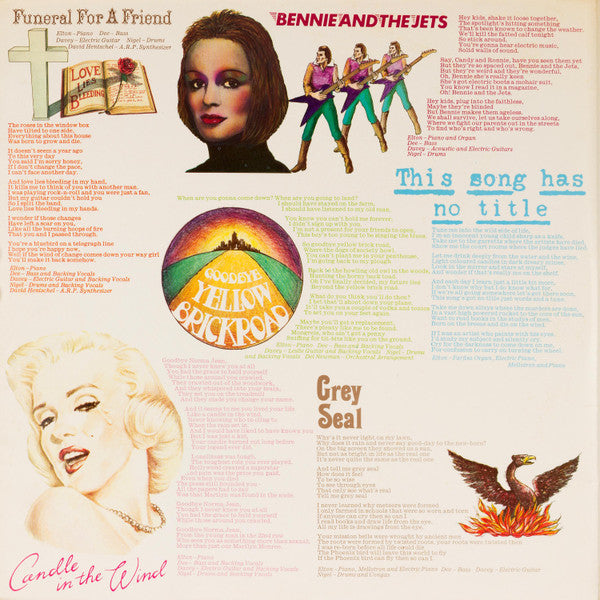 Comes in a tri-fold cover with brown/yellow obi strip.Includes 8-page green lyric/liner note insert & large folded "Rock Now" poster of Elton.