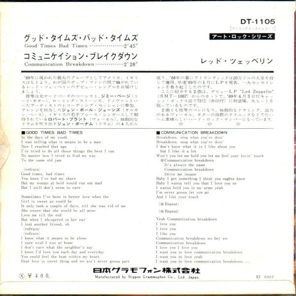 Led Zeppelin - Good Times Bad Times (7", 45 RPM, Single, Mono) - Very Good Plus (VG+) / Very Good (VG)