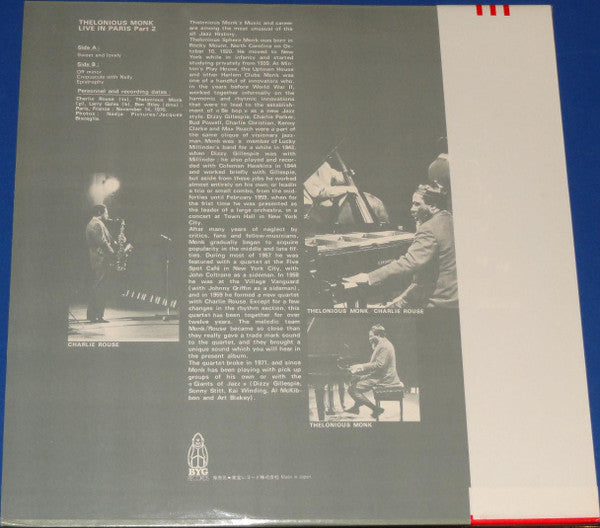Thelonious Monk - Live In Paris Part 2 (LP, Album) - Very Good Plus (VG+) / Very Good Plus (VG+)