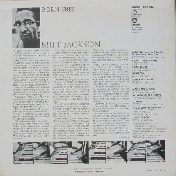 Milt Jackson - Born Free (LP, Album, Reissue, Stereo) - Very Good (VG) / Very Good Plus (VG+)
