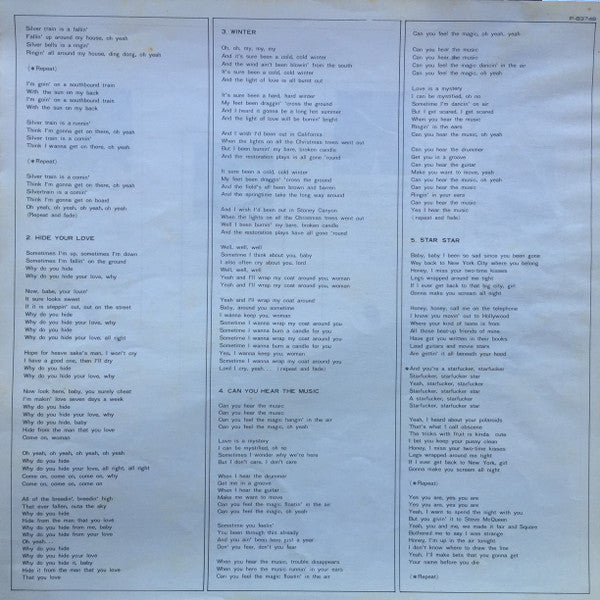 Gatefold sleeve with red & white obi, beautiful "super gloss" Goats Head print, printed sepia tone inner sleeve, and 4-page insert featuring Japanese liner notes, English lyrics, and mini-discography showing 4 other Rolling Stones Records releases (P-5046S, P-8091S, P-8152S, P-5051~2S).℗ © 1973 Promotone B.V. Printed in Japan