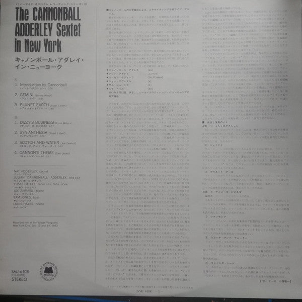 Cannonball Adderley Sextet - In New York (LP, Album, Reissue, Stereo) - Very Good Plus (VG+) / Very Good Plus (VG+)