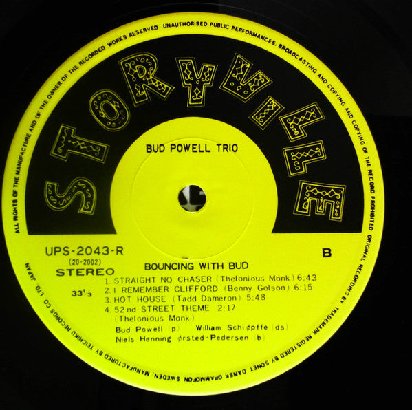 The Bud Powell Trio - Bouncing With Bud (LP, Album, Reissue, Stereo) - Very Good (VG) / Very Good Plus (VG+)