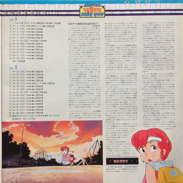Soundtrack to the film Urusei Yatsura: Only You, based on the manga by Rumiko Takahashi.Gatefold sleeve with obi and insert glued in.