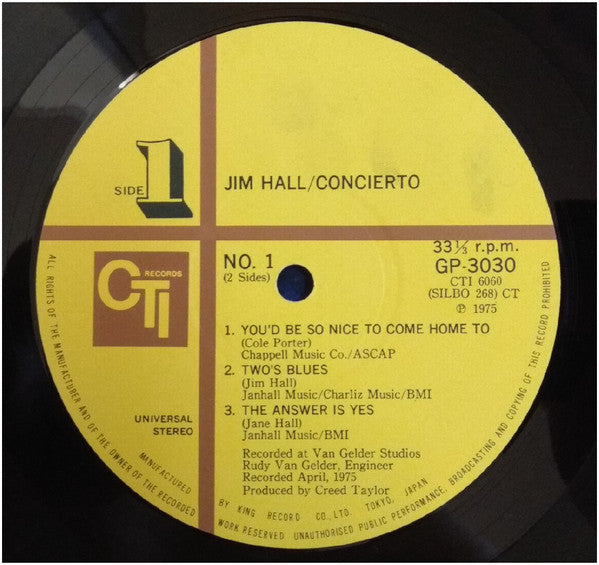 Jim Hall - Concierto (LP, Album, Stereo) - Very Good (VG) / Very Good (VG)