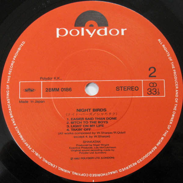 Shakatak - Night Birds (LP, Album) - Good Plus (G+) / Very Good Plus (VG+)