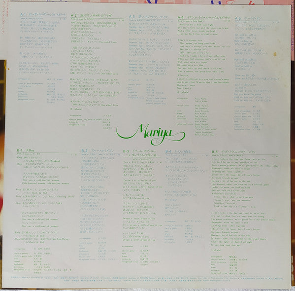 Mariya Takeuchi 2nd studio album. Song titles are in English/Romanji on back of Jacket, in Japanese on the label.Some copies had a promotion for Mariya's previous (and first) studio album, Beginning, on the back of the obi strip.