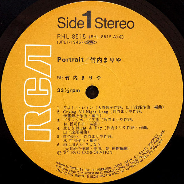 Mariya Takeuchi - Portrait = ポートレイト (LP, Album) - Near Mint (NM or M-) / Very Good Plus (VG+)