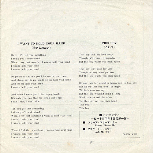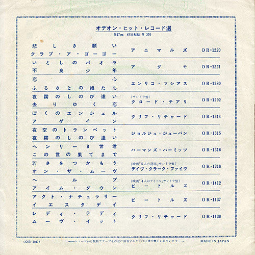 "The Odeon Hit Records" were introduced at the back of the lyric sheet: from "OR-1220" to "OR-1438" (printed the price "¥370")