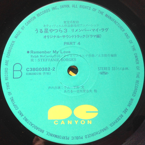 Story from the movie Urusei Yatsura 3: Remember My Love based on a manga by Rumiko Takahashi.Side A contains the opening theme 'Born To Be Free' by Steffanie Borges.