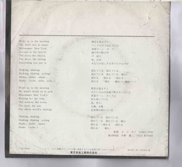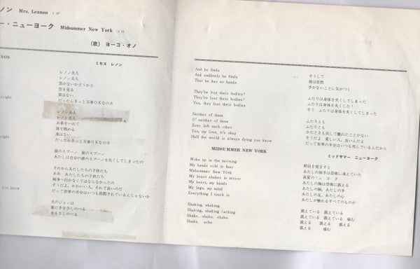 Yoko Ono - Mrs. Lennon / Midsummer New York (7", Single) - Good Plus (G+) / Very Good Plus (VG+)
