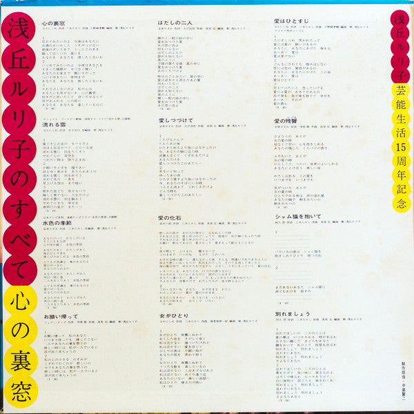 浅丘ルリ子 芸能生活15周年記念 / 歌謡ボッサ最高の人気曲「シャム猫を抱いて」収録のアルバム!!Album title transliterated as "Kokoro No Uramado".