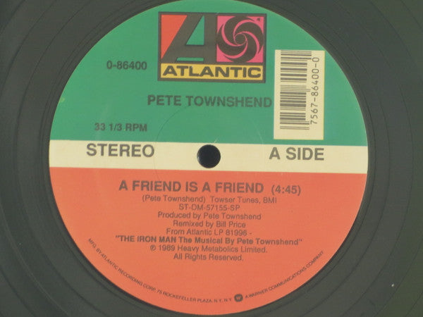 Pete Townshend - A Friend Is A Friend (12", Maxi-Single) - Very Good (VG) / Very Good Plus (VG+)