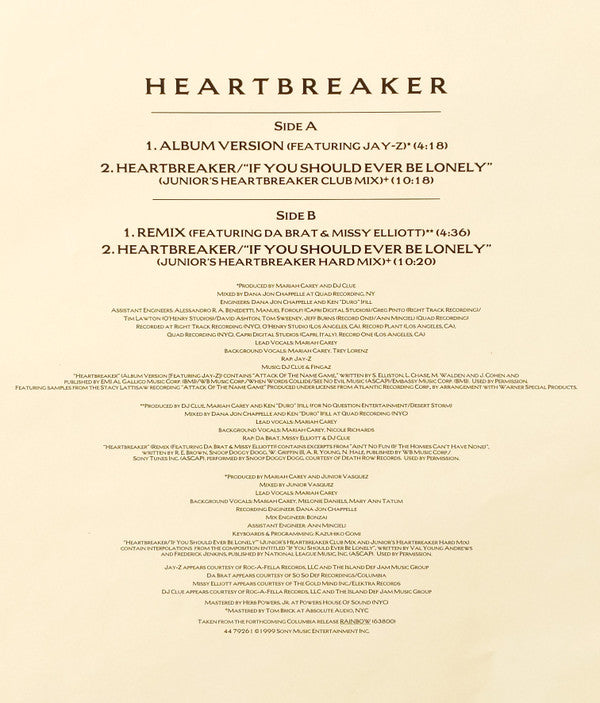Mariah Carey - Heartbreaker (12", 33 ⅓ RPM, Stereo) - Very Good (VG) / Good Plus (G+)