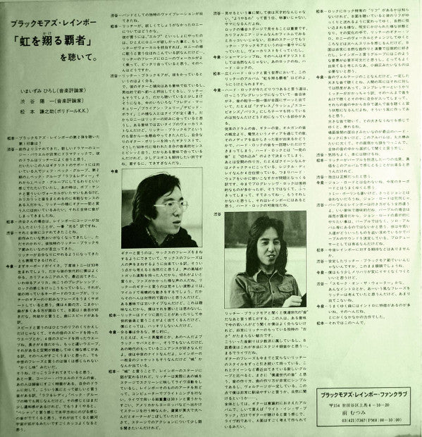 "ブラックモアズ・レインボー・ファンクラブ〒154世田谷区上馬4-10-20前むつみ03(421)7367(PM8:00-10:00)"