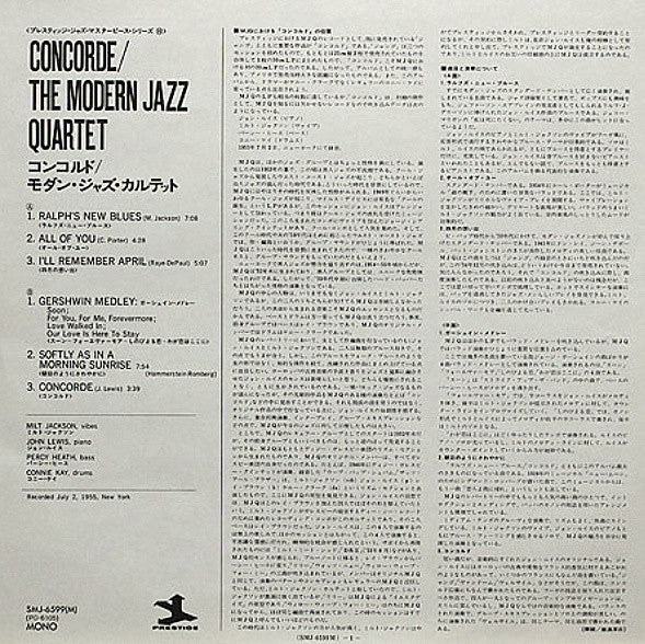 The Modern Jazz Quartet - Concorde (LP, Album, Reissue, Mono) - Very Good Plus (VG+) / Very Good Plus (VG+)