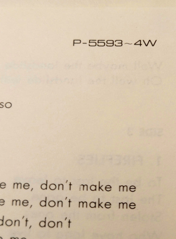 Issued with two inner sleeves with tour dates and technical data,one insert with lyrics and one japanese insert with all japanese text.℗&©1980 Warner Bros. Records, Inc.