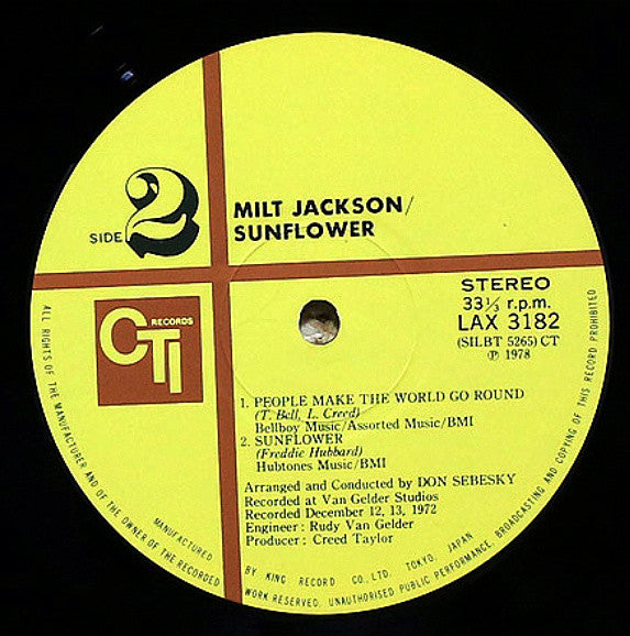Milt Jackson - Sunflower (LP, Album, Limited Edition, Reissue) - Near Mint (NM or M-) / Very Good Plus (VG+)