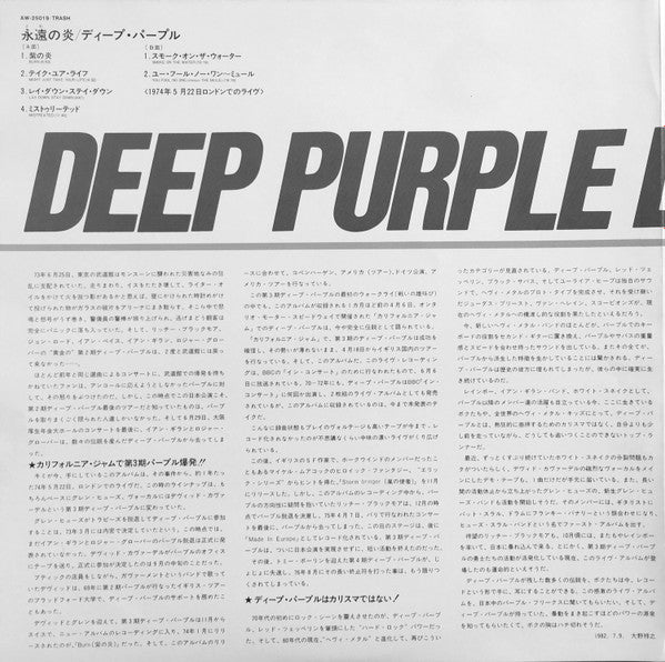 Including 4-Page insert has photos of Ritchie Blackmore, David Coverdale, Glenn Hughes, Jon Lord, and Ian Paice on one side / lyrics in Japanese and English on the other.