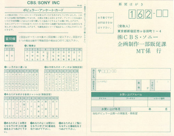 With obi, insert, original inner sleeve, survy card.℗&©1982 CBS, Inc.