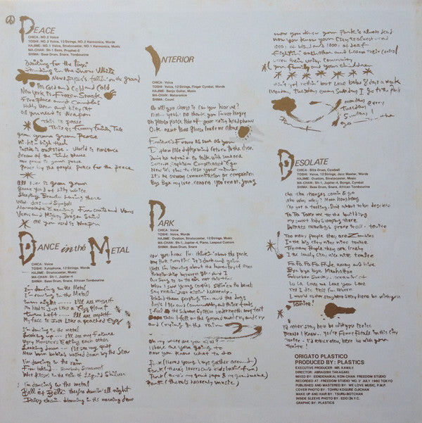 Plastics - Origato Plastico = オリガト プラスティコ (LP, Album, Stereo) - Very Good Plus (VG+) / Very Good Plus (VG+)