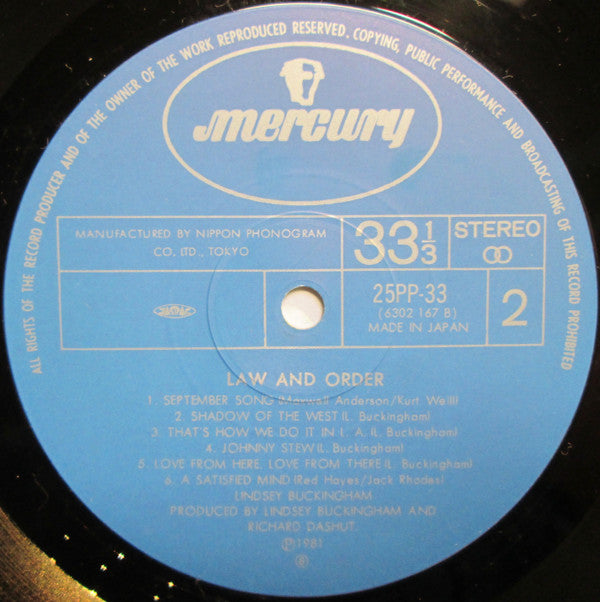 Lindsey Buckingham - Law And Order (LP, Album) - Very Good (VG) / Very Good Plus (VG+)