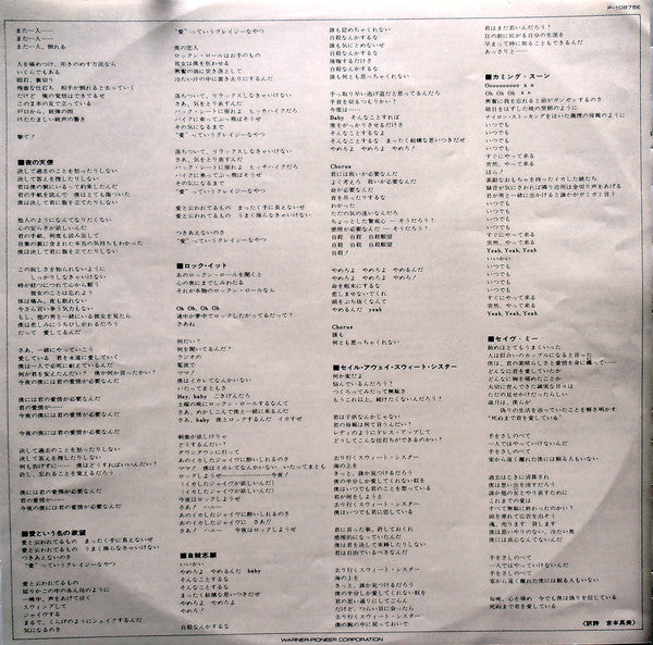 Foil SleeveEnglish pictures/lyrics inner sleeve. Japanese text/lyrics insert. Red discography obi-strip.