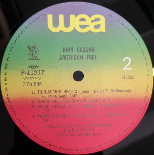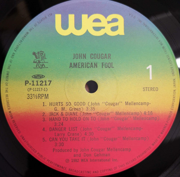 John Cougar Mellencamp - American Fool (LP, Album) - Very Good (VG) / Very Good Plus (VG+)
