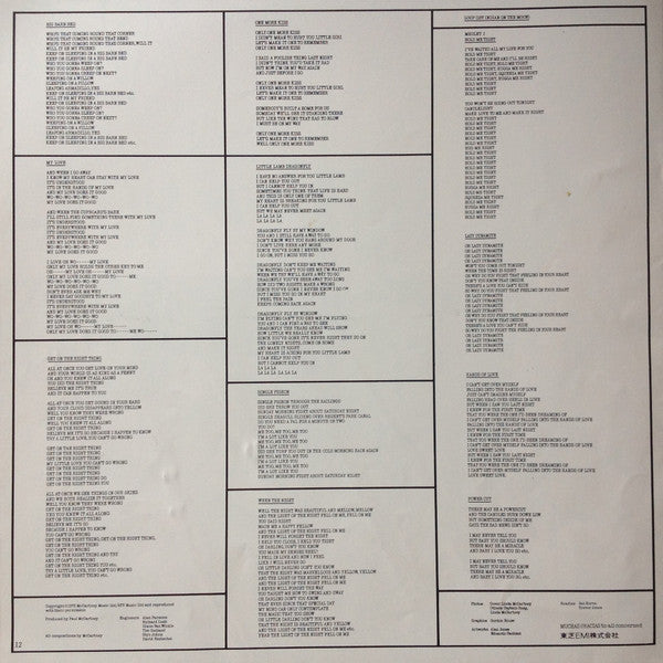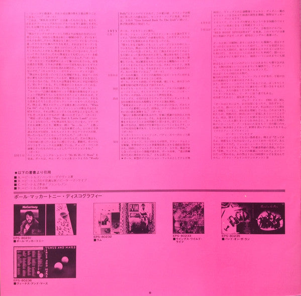Gatefold sleeve with obi and two booklets (A 12-page colour booklet with pictures and credits in English and a 12-page black and pink booklet with notes, translations and an extensive chronological biography of McCartney in Japanese).This release looks similar to this [r=4362888] but credited companies are different.