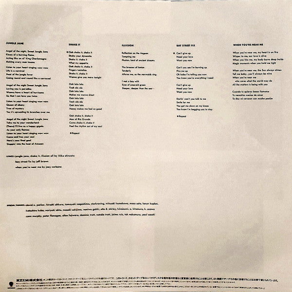 With obi and insert. Sleeve has stain, scuff, sticker and bumped corner. Obi has tape, stain and scuff. Insert has stain, tape and wrinkle. Disc has scratch.
