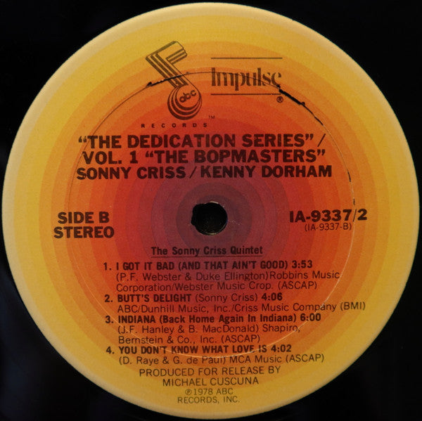 Sonny Criss - The Bopmasters (2xLP, Compilation) - Very Good (VG) / Very Good (VG)
