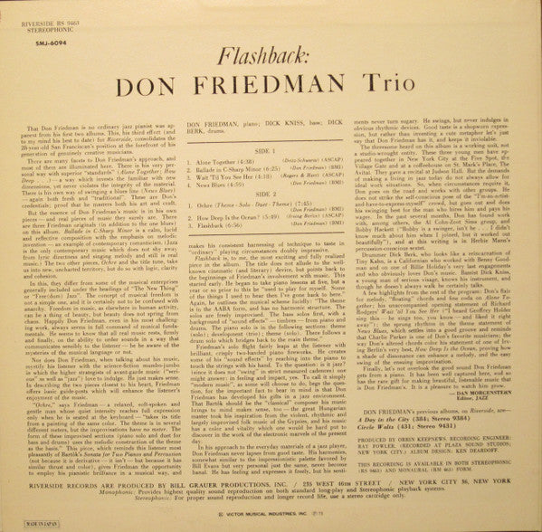 Don Friedman Trio - Flashback (LP, Album, Reissue, Stereo) - Near Mint (NM or M-) / Very Good Plus (VG+)