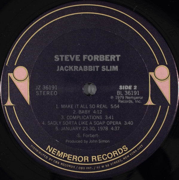Steve Forbert - Jackrabbit Slim (LP, Album, Stereo) - Very Good (VG) / Good Plus (G+)
