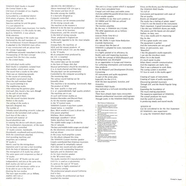 Recorded at: Yamaha R & D Studio, Los Angeles, California.